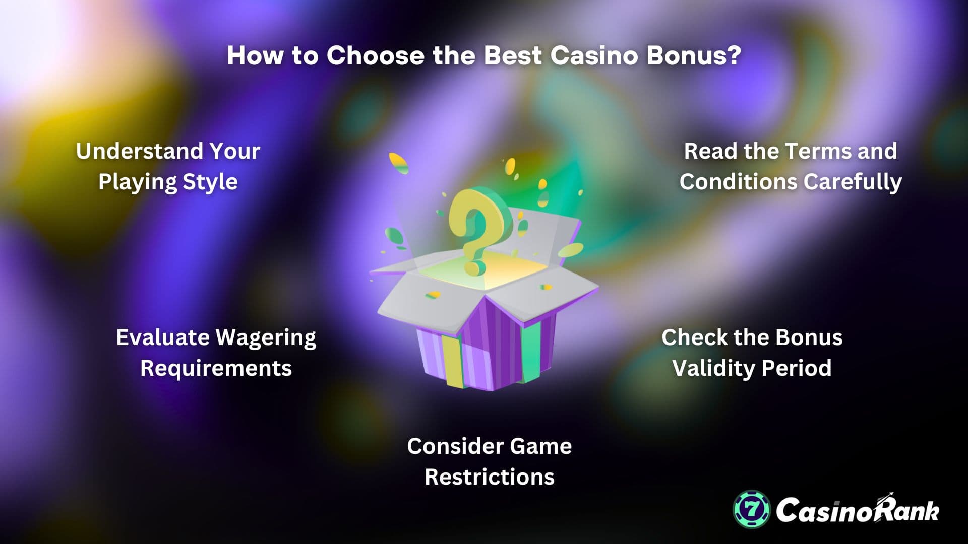 Elegir los mejores bonos de casino en línea puede ser complicado, ya que hay muchas ofertas disponibles. Debes considerar varios factores para asegurarte de que obtienes un bono que se adapta a tu estilo de juego y preferencias.